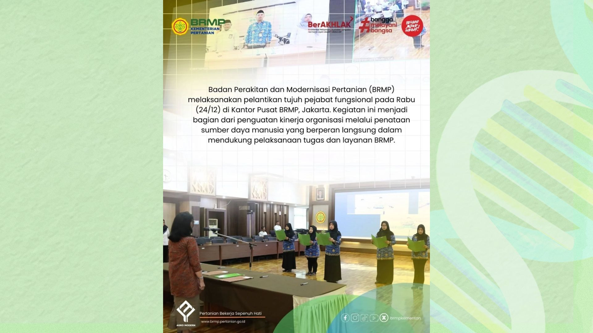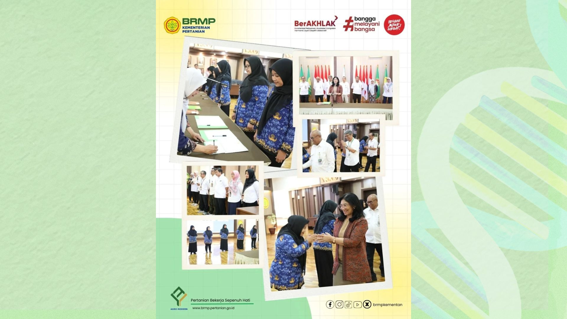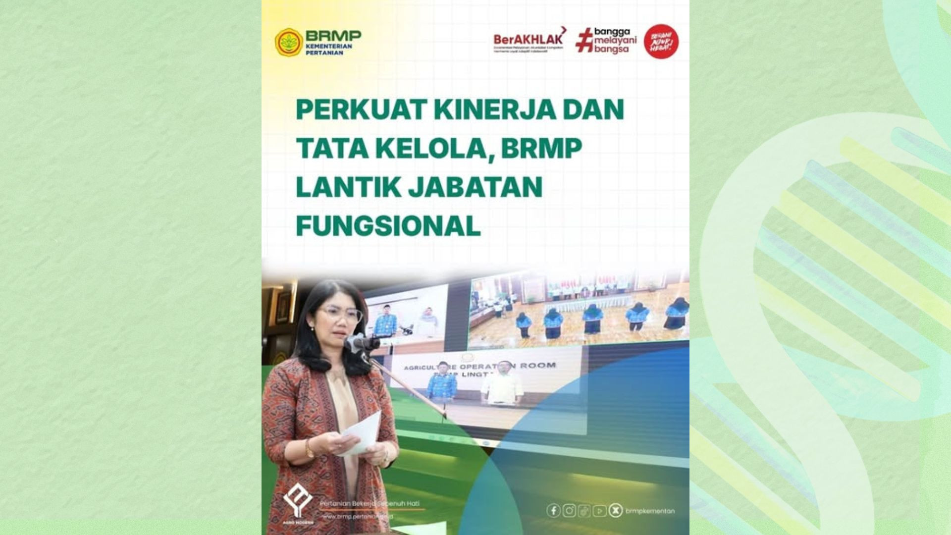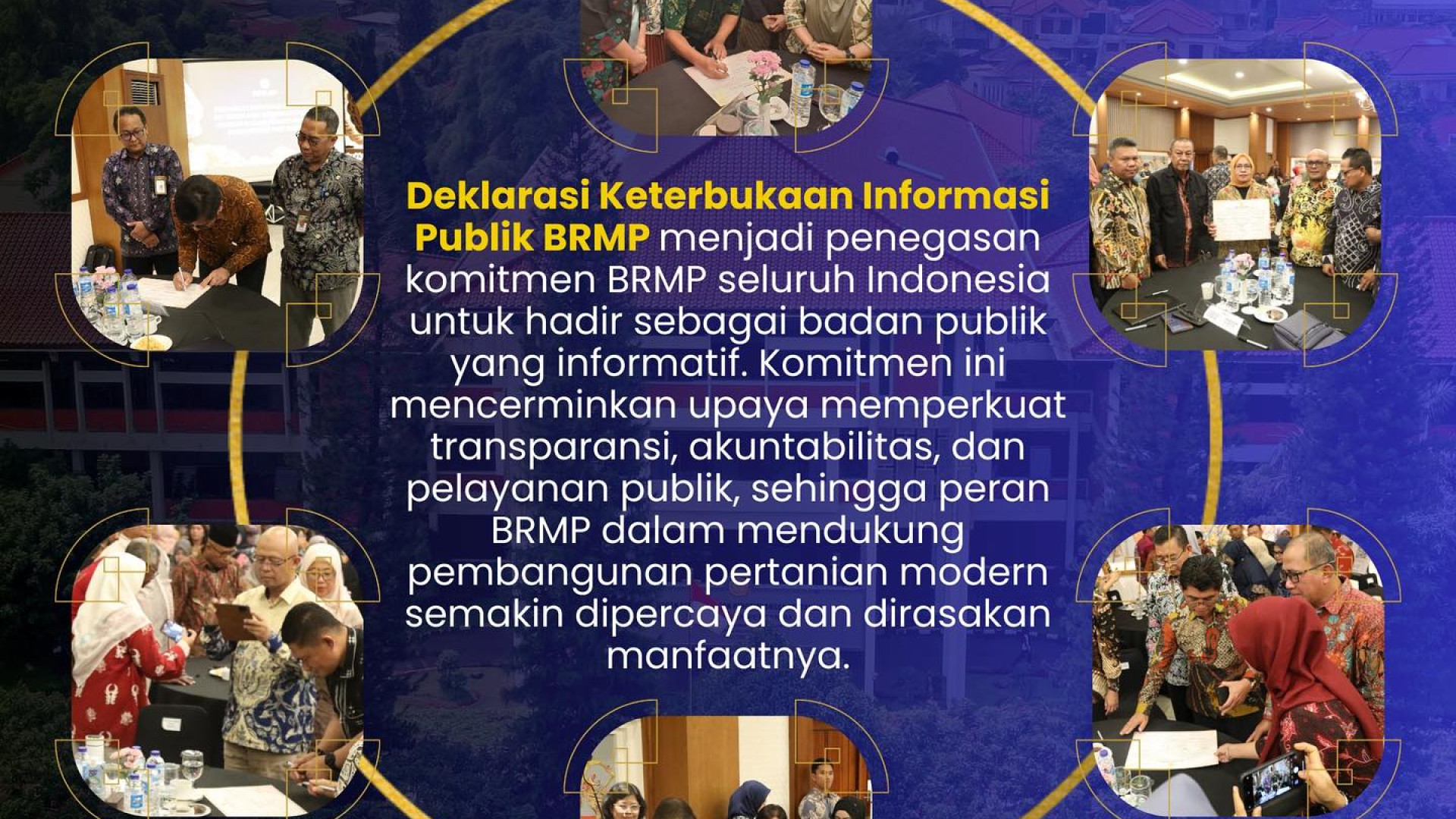Badan Perakitan dan Modernisasi Pertanian (BRMP) mengusung modernisasi pertanian berkelanjutan dengan inovasi teknologi yang meningkatkan produktivitas, efisiensi, dan daya saing sekaligus menjaga kelestarian lingkungan. Melalui penelitian, perakitan teknologi, mekanisasi, dan digitalisasi, BRMP membangun sistem pertanian yang cerdas, ramah lingkungan, dan tangguh menghadapi tantangan masa depan.
