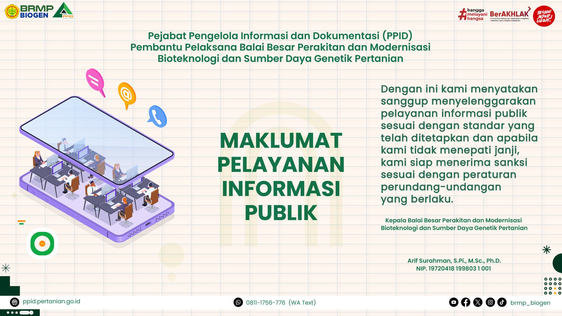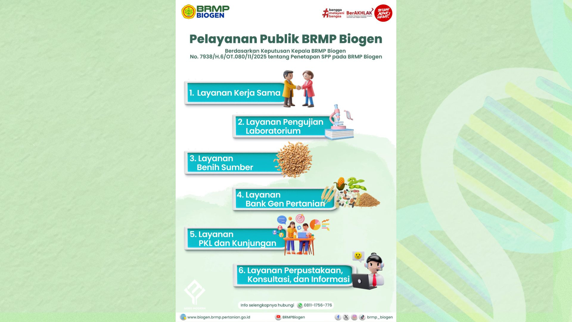 BRMP Biogen menyediakan pelayanan barang, jasa, atau administratif yang dilaksanakan sesuai Standar Pelayanan Publik (SPP) yang berlaku.