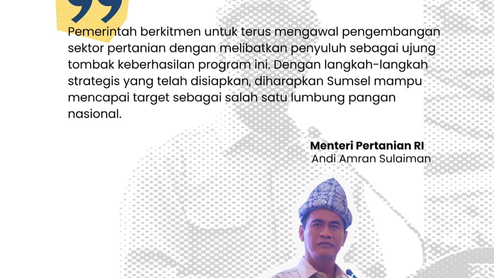 Menteri Pertanian Andi Amran Sulaiman menargetkan Sumatera Selatan masuk tiga besar produsen beras nasional. Dengan potensi lahan yang besar, Sumsel berpeluang menjadi nomor satu dalam lima tahun ke depan!