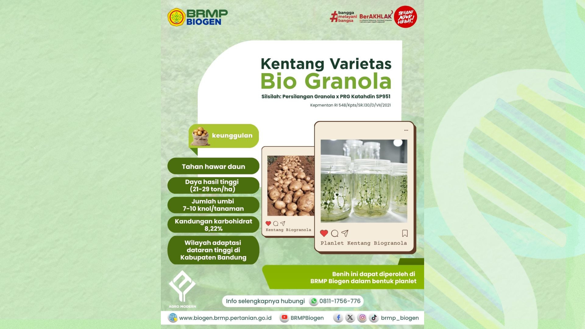 Kentang ini merupakan hasil persilangan dari Granola x PRG Katahdin SP951. Simak informasi di gambar ini.
