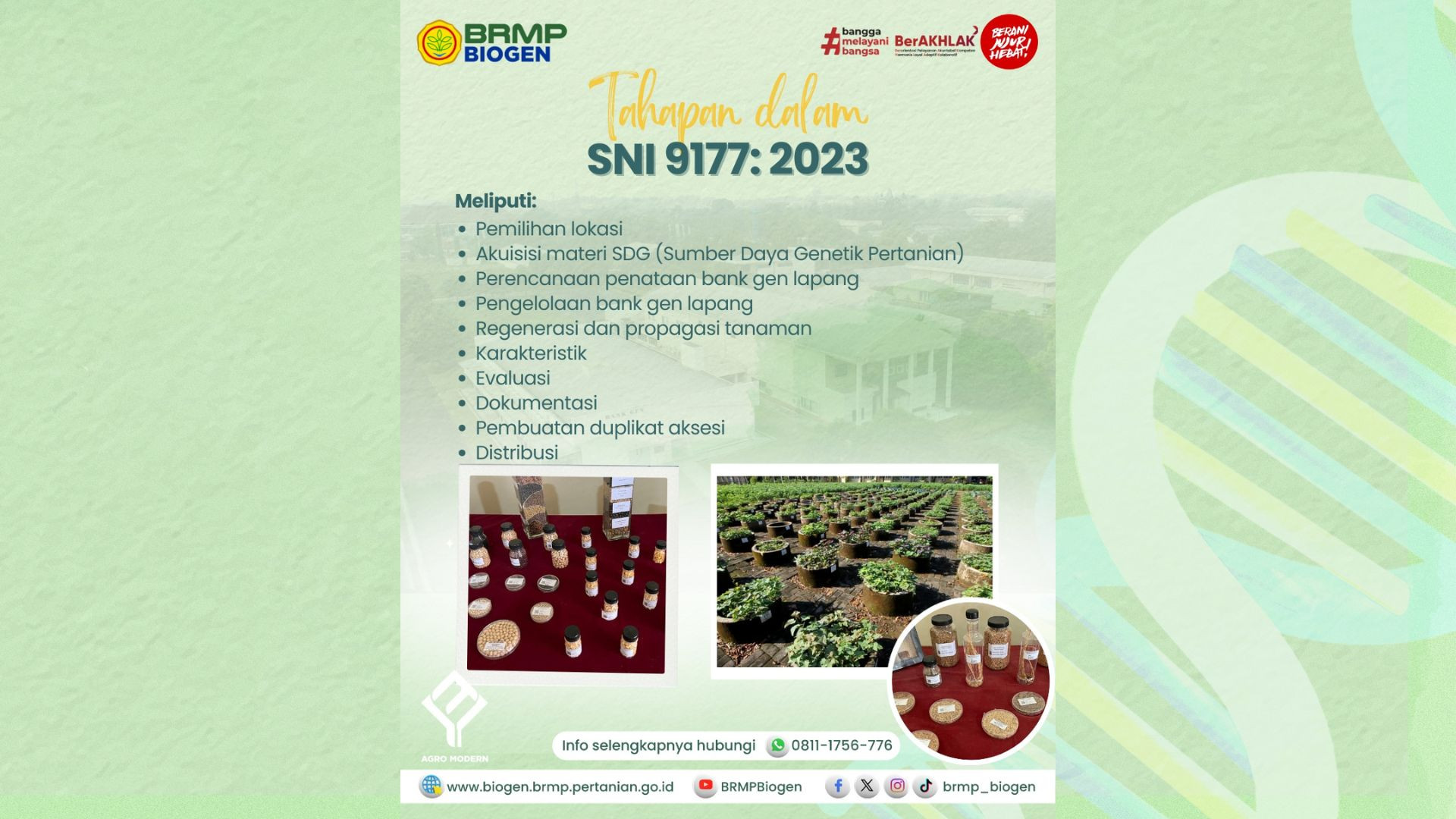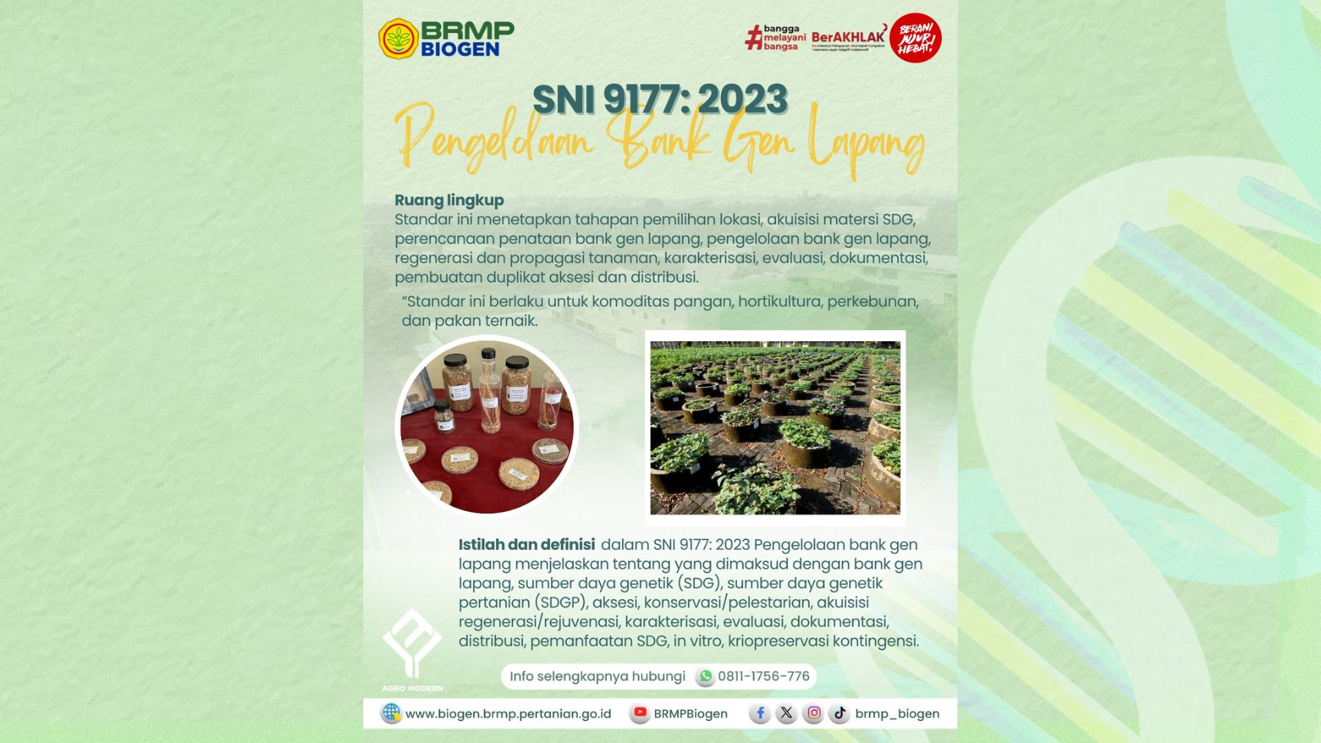 SNI 9177:2023 hadir sebagai standar nasional dalam pengelolaan Bank Gen Lapang, memastikan setiap sumber daya genetik pertanian tersimpan, terpelihara, dan dimanfaatkan secara berkelanjutan demi ketahanan pangan bangsa.