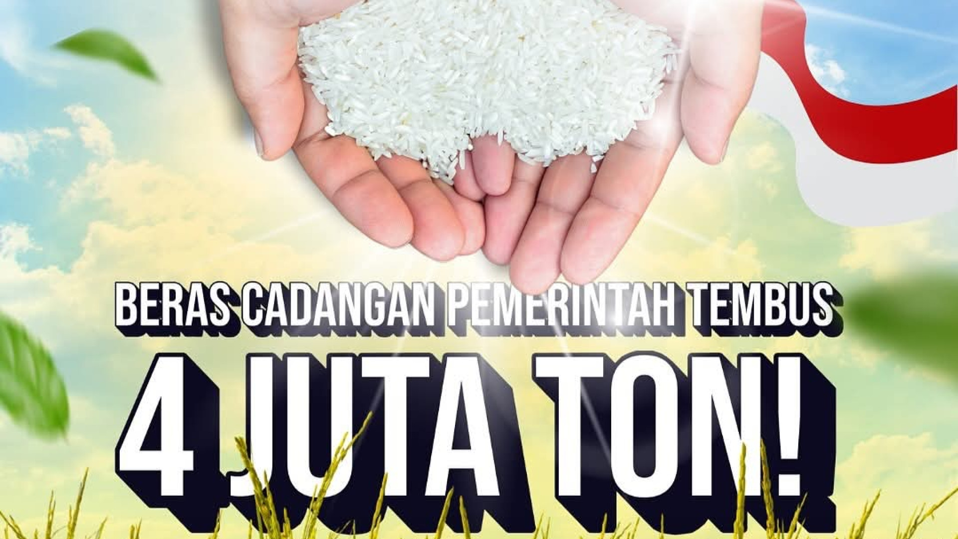 Stok cadangan beras pemerintah (CBP) kini menembus 4 juta ton, tertinggi sejak Bulog berdiri tahun 1969.